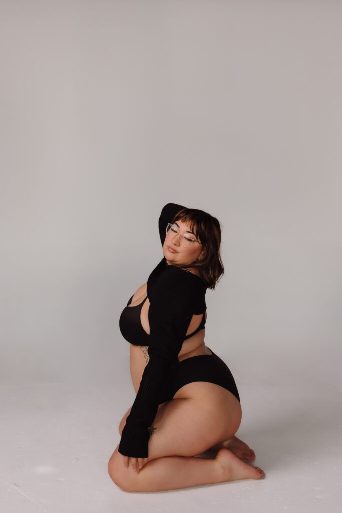 If you’re nervous about posing, look through my Pinterest or my Instagram to find poses you love! Take note (or screenshot) what photos you love + which ones aren’t your vibe, so we can make sure to get photos you ADORE. I am the pro at making the things you say you want highlighted POP and helping you look your best. Remember, I have photographed over 375 sessions and have seen EVERY body type. Every single one of those people left feeling confident, empowered, and hot as f*ck. You’re about to join that club!!!!