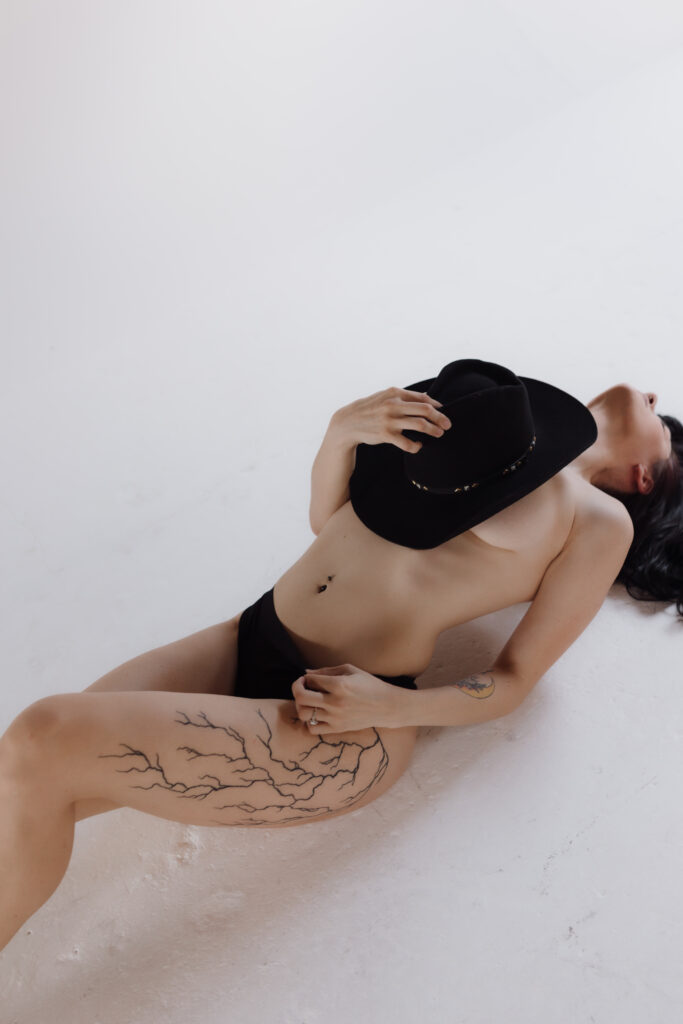 Hat: Add a playful touch to your boudoir look with a stylish hat – think cowboy vibes, wide-brimmed hats, or even a quirky beanie.