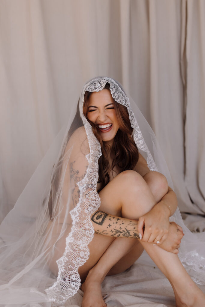 Wedding Veil: Channel bridal beauty with your wedding veil for a romantic and ethereal boudoir look.